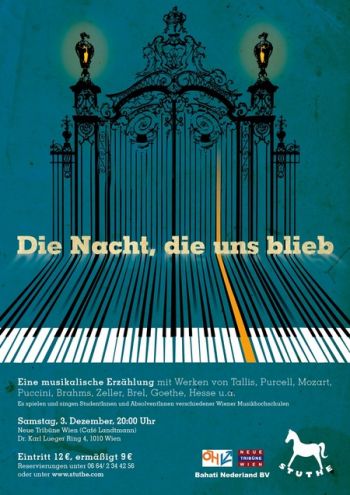Am Klavier begleitet sie ihr kongenialer Partner und Songschreiber David Ruosch, einer der gefragtesten Jazz- und Bluespianisten der Schweiz, Dozent an der Zürcher Hochschule der Künste und Lieblingspianist des Wiener Liedermachers Norbert Schneider. Auf der Geige erleben wir Maria Patera. In ihrem Spiel verbindet die Wienerin virtuose Violin-Eleganz mit Improvisation und der Gelassenheit des Jazz.